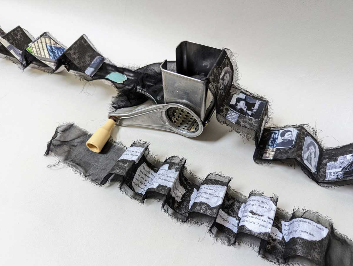 Artist Statement about the work: My eldest sister’s complex and rich life ended with a short decrescendo into illness and hospice. During this end time I went to Paris where she was living to help care for her briefly and bring her back to the USA. It was during this two week period that the broken grater appeared as a harbinger and later became the vehicle for this story.